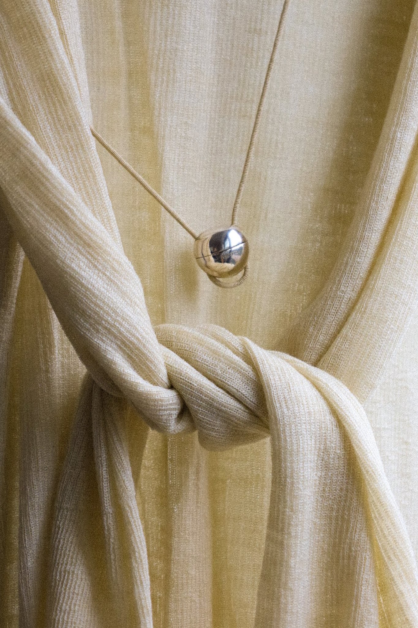 小さなコネクトパーツをスライドさせ、チョーカー付けからロングまで自由に長さを変えられます。